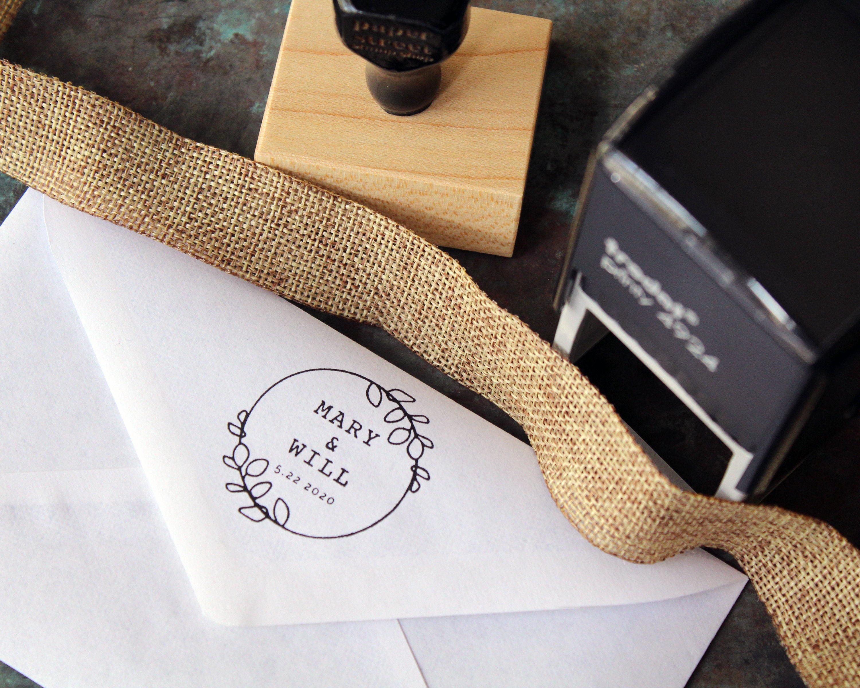 Eucalyptus Save the Date Stamp - Newlywed - Wedding - Save the Date - Personalized Gift - Housewarming - Wood stamp - Custom - Self Inking