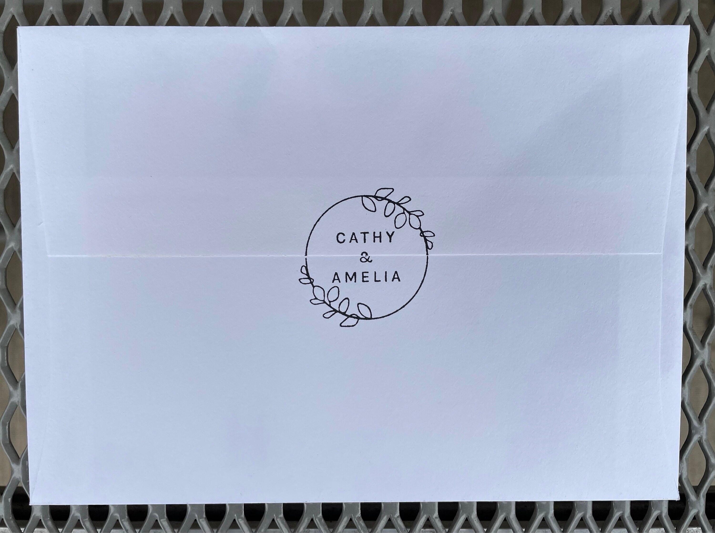 Stamp turned out fantastic! Seller was very patient with me and generously substituted a different font to match our invitations. I’m obsessed. Going to stamp absolutely everything.