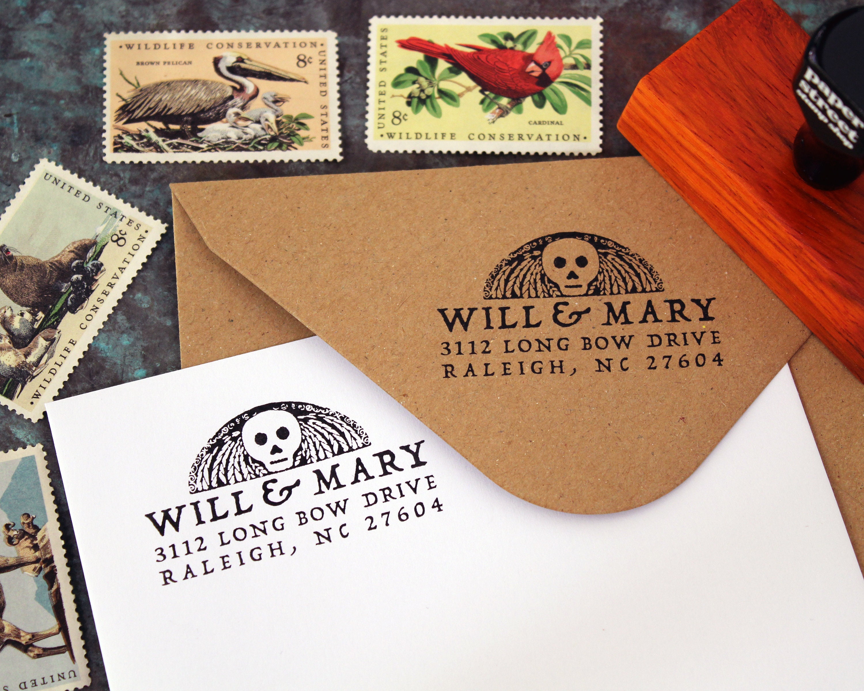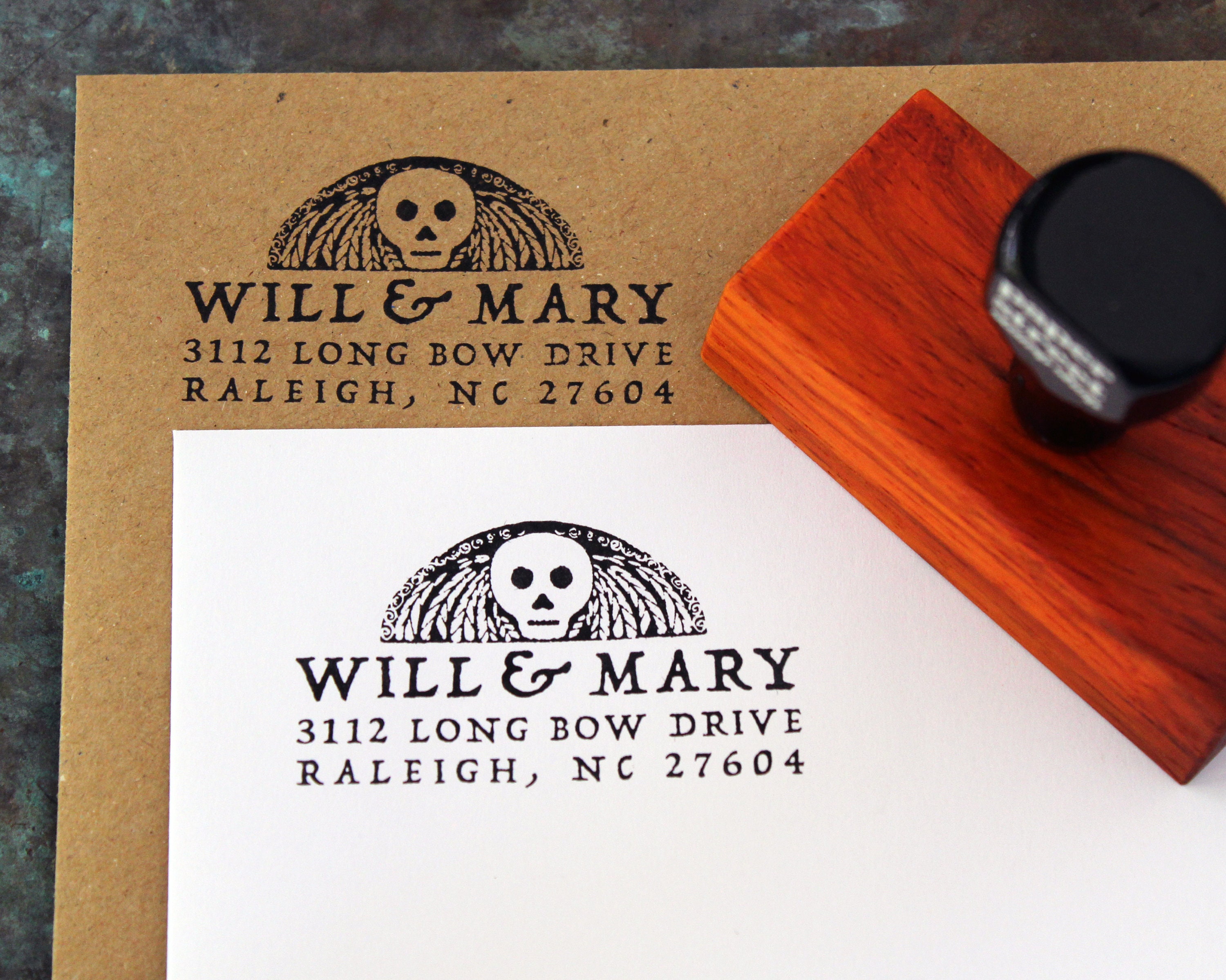 In an electronic world, there’s something special and tangible about paper stationary and invitations. Our return address stamps are perfect for personalizing wedding invitations, RSVPs, “Save the Dates”, holiday cards, party invitations, letters, packages, etc. Whether you choose a premium hardwood stamp handcrafted in maple, cherry, or walnut, or prefer the convenience of an eco-friendly self-inking stamp, we can personalize a rubber stamp for you. Every aspect of your stamp is produced in-house at Paper Street Stamp Shop. I’m a graphic designer and a woodworker, and this translates to me being completely in control of the quality and speed in which you receive your personalized stamp.